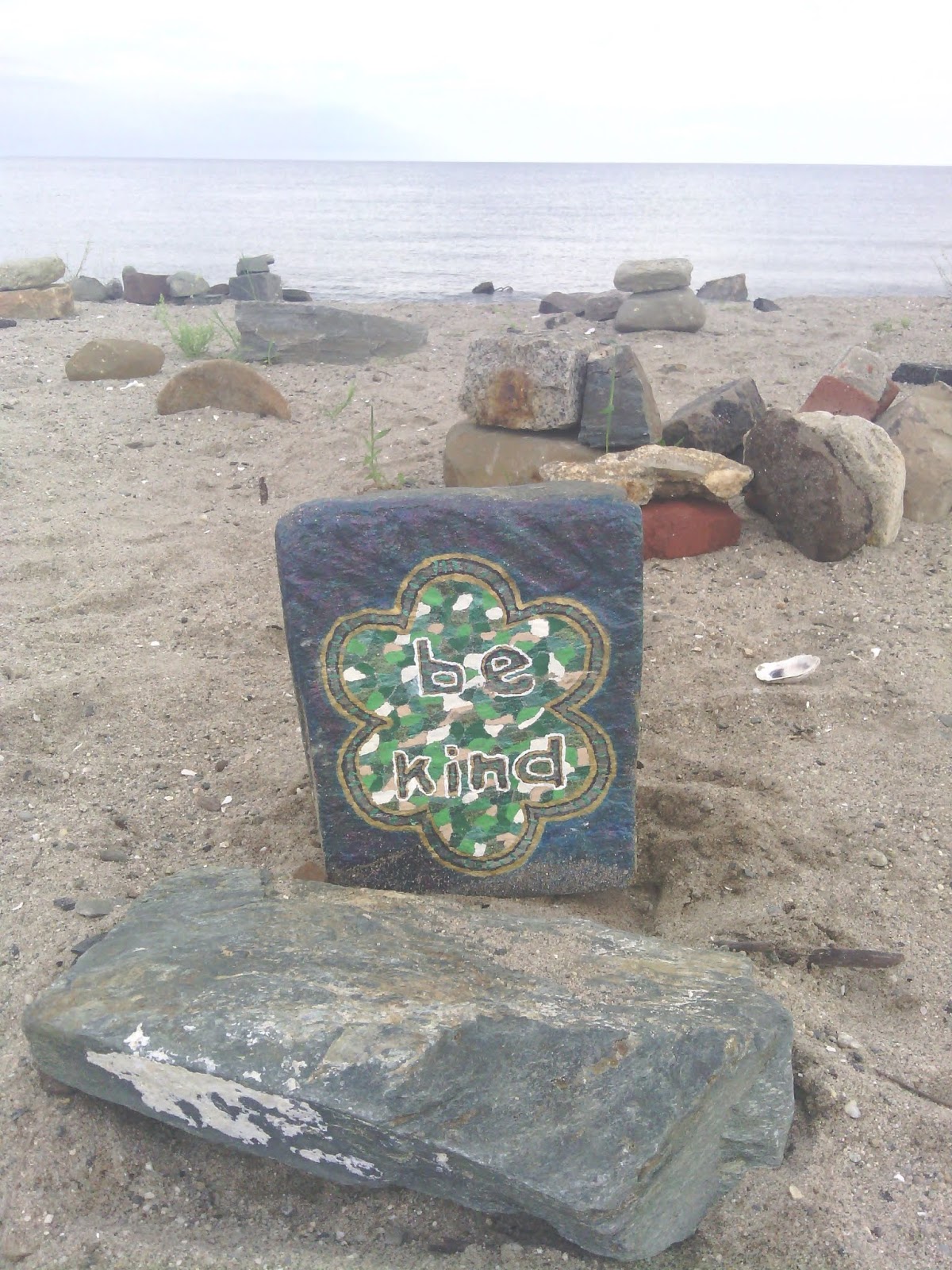 At one point along the boardwalk, we encountered a stretch of mysterious mounds of sea stones . They appeared to be arranged by hand but the purpose was obscure but appealing. So we added a few stones in order to continue the joke (?).